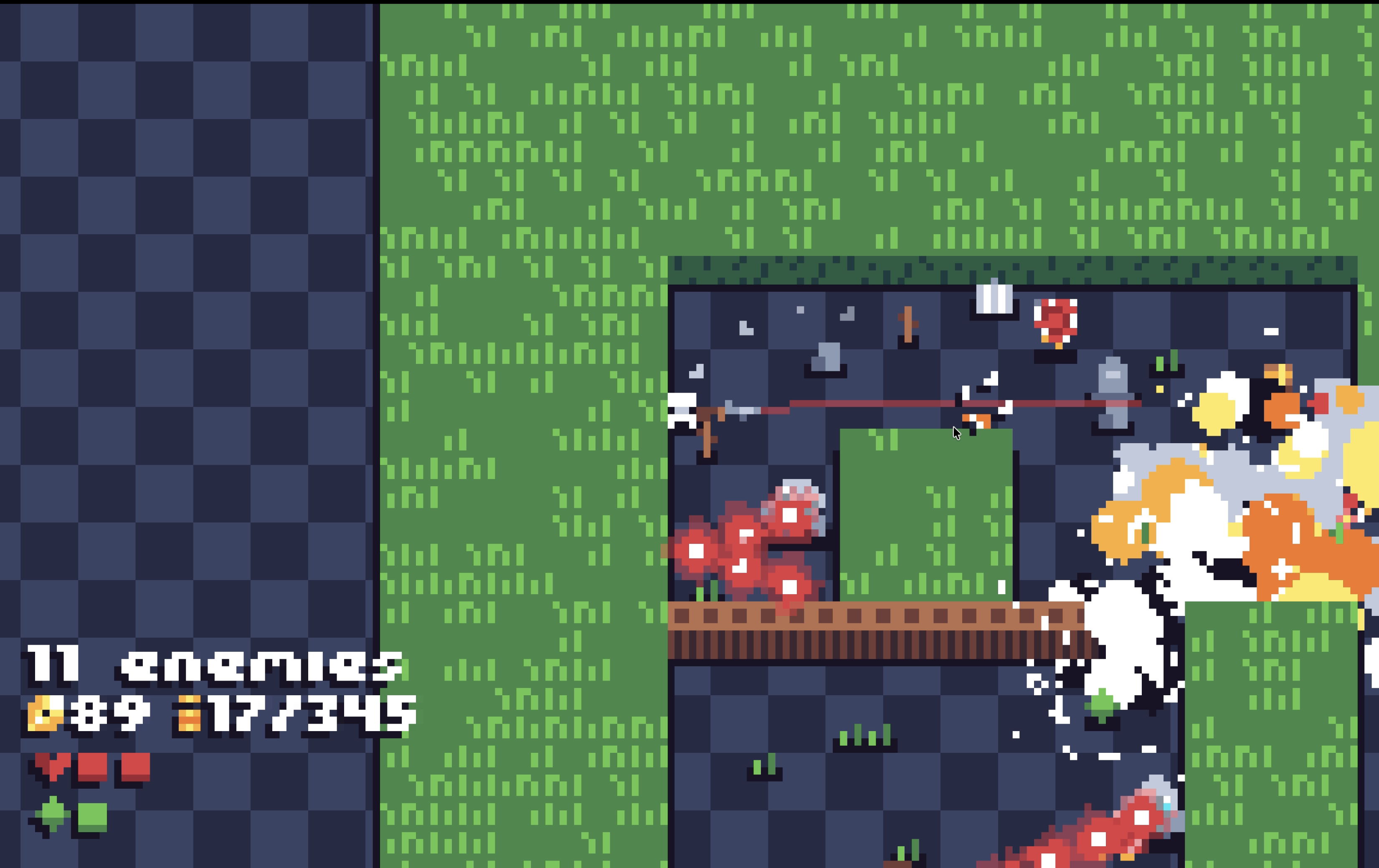 Biggest complaint: ultra low res looks cute but detracts from the game for me. Lots of deaths were to something that I couldn't tell what it was or couldn't see. Lot of seemingly random explosions. Maybe everything explosive could share a color or shader?
