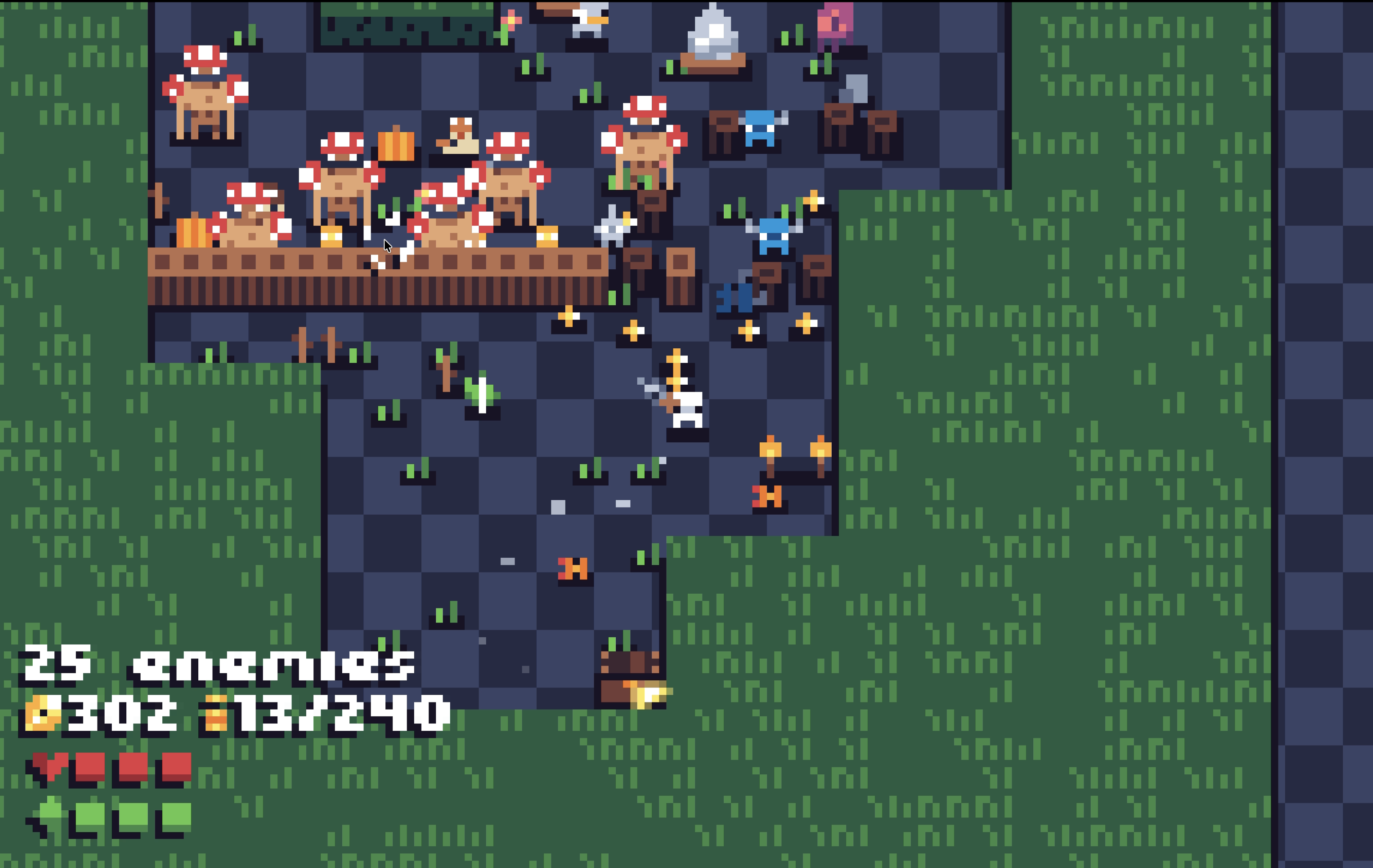 mallow is heavily inspired by nuclear throne by having quick action paced runs and chaotic challenging gameplay. the game is quite difficult and is very punishing. the main mechanic is the ability to select enemies as well as upgrades. for every upgrade you select you must select an enemy.